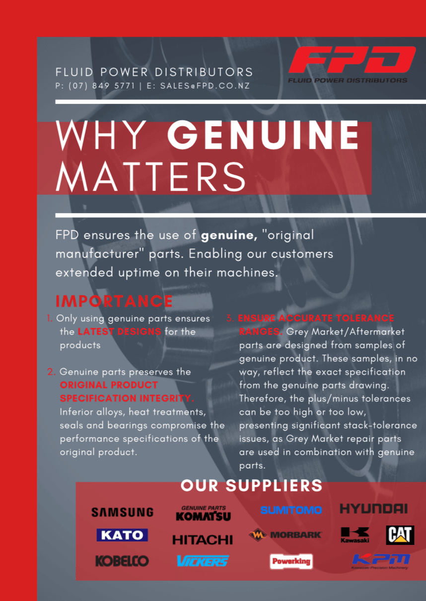 FPD have been servicing the Hydraulic Industry since 1984. With almost 40 years of experience under our belt, our team of specialist staff and qualified technicians are masters at sourcing and servicing challenging hydraulic components. We carry a large assortment of stock, including a variety of parts and complete pumps. We are able to source and supply parts for almost all excavator brands found in NZ and act as New Zealand's exclusive Kawasaki (KPM) Mobile plant & equipment distributor.